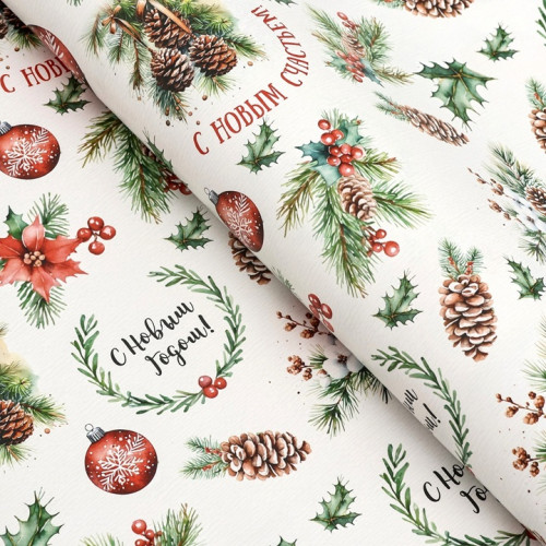 Бумага упаковочная новогодняя «Шишки», глянец, 80 г/м², 70×100 см