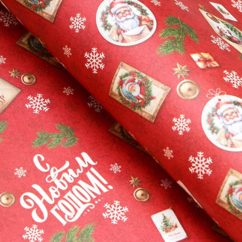 Бумага упаковочная новогодняя «С Новым годом», белый крафт, 80 г/м², 50×70 см