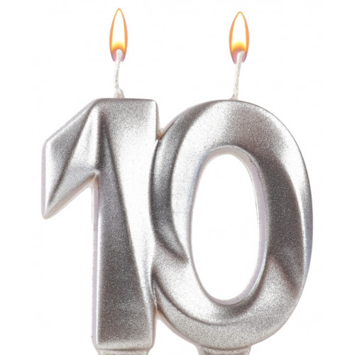 Свеча в торт юбилейная «Грань», цифра 10, серебро