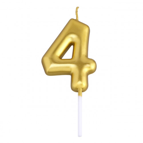 Свеча в торт "Европейская", цифра "4", 6 см, золото