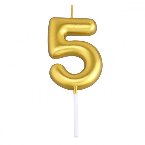 Свеча в торт «Европейская», цифра 5, 6 см, золото