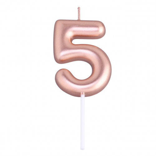Свеча в торт «Европейская», цифра 5, 6 см, розовое золото