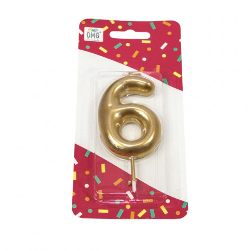 Свеча Цифра 6 Золотой 6см