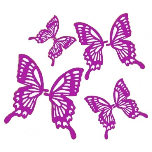 Применение трафарета очень просто. Просто поместите его на поверхность выпечки и равномерно нанесите пищевую пудру, какао-порошок или распылите краски через отверстия трафарета, после этого аккуратно удалите трафарет, оставив на поверхности красивый и декоративный узор. Размер длины крыла бабочек: 12; 9,8; 7,9; 6,1 см В наборе 8 элементов. Предназначены для изготовления декора из шоколада, а также для нанесения силуэта непосредственно на изделие. Из пленки ПП 0,18 мм