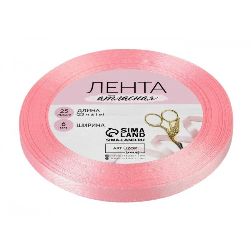 Лента атласная №277(77) 6мм*25±1ярд(23м±1м) розовый АУ