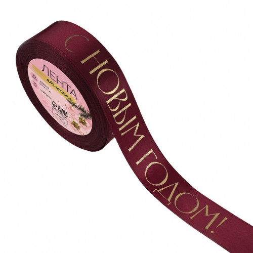 Лента атласная с тиснением «С Новым годом», 25 мм, 23±1 м, бордовый