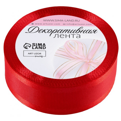 Лента декоративная, репсовая/атласная, 25 мм, 9.1 ± 0.5 м, красная №26