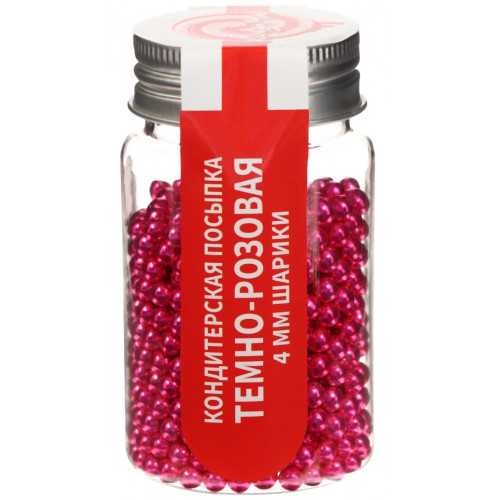Кондитерская посыпка, темно-розовая, шарики, 4 мм, 50 г