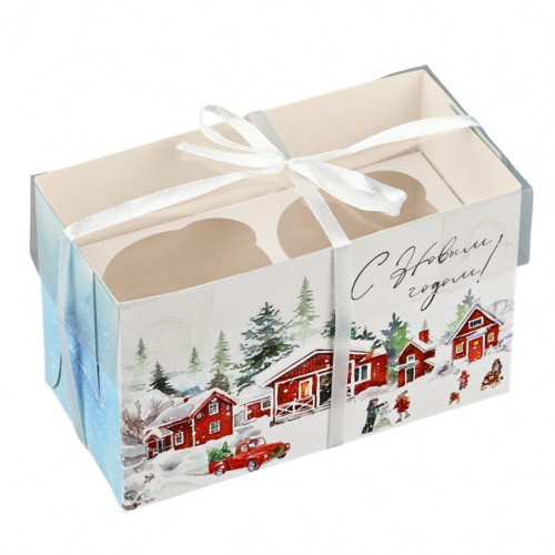 Коробка для капкейка «С Новым годом», зимний отдых, 16 х 8 х 10 см