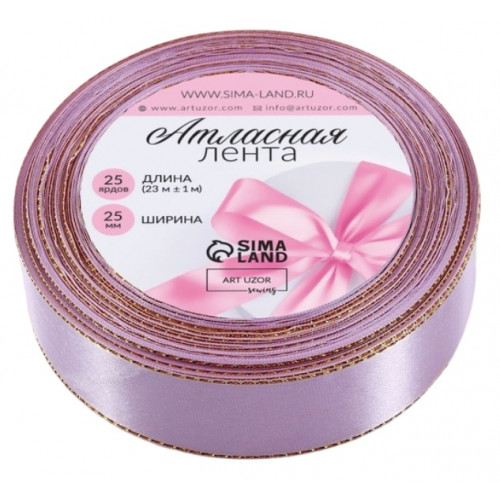 Лента атласная, с золотым люрексом, 25 мм, 23±1 м, сиреневая №044