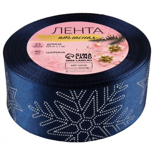 Лента атласная с тиснением «Снежинки», 40 мм, 23±1 м, тёмно-синяя